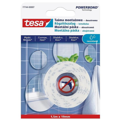 Kétoldalú ragasztó - alkalmas üveg, fém és műanyag ragasztására, színes, ellenálló víz ellen, 1,5 m-es tekercs, szélessége 19 mm, fehér kivitel Bütykölgetni fogsz a ház körül, vagy a munkahelyeden? Gondoskodj a sikerről a Tesa rögzítőszalaggal. A kétoldalas ragasztószalaggal méterenként akár 20 kilogrammot erősíthetsz nedvességgel é