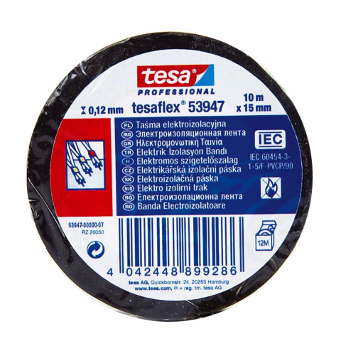 Kiváló minőségű tesa elektromos szigetelőszalag fekete színben, ami önkioltó anyaga segítségével megakadályozza az elektromos tüzek elterjedését a betekert vezetéken. Megbízható védelmet nyújt kábelek szigeteléséhez, kötegeléséhez és rögzítéséhez.