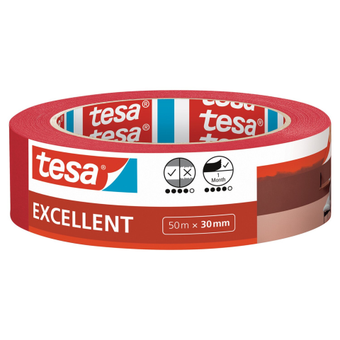 A tesa Excellent maszkolószalaggal a festékszélek mindig élesek és tiszták lesznek. Ideális különböző beltéri festésekhez, mivel pontos, minőségi munkát garantál, miközben felragasztása is egyszerű. A tesa Excellent maszkolószalagot könnyű eltávolítani, nem hagy nyomot - beltérben akár 1 hónapig leszedhető. Jól tapad különféle felületekre, mint a finomvakolású falak, tapéták, üveg, alumínium, fa, vagy a kemény PVC. Tartós, hatékony és tökéletes vége