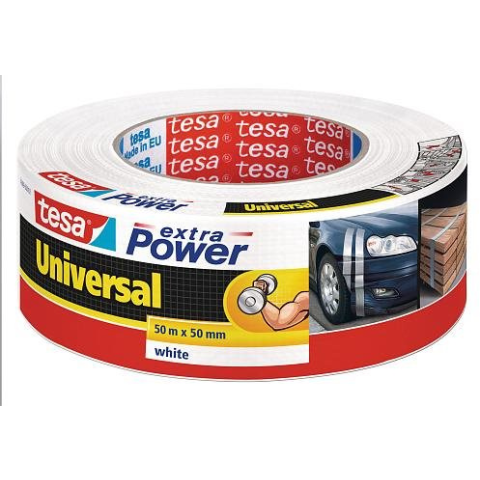Ragasztószalag - duct tape, textil, tekercs hossza 50 m, szélessége 50 mm, alkalmas üveg, papír, műanyag, fa és textil felületekre, színes, ellenálló víz és elöregedés ellen, fehér kivitel TESA Extra Power Universal, textil, fehér, 50 m, 50 mm ragasztó szalag - leglényegesebb előnyök A kiváló TESA ragasztószalag jó választás üveg, papír, műanyag, fa és textil megragasztására A ragasztó