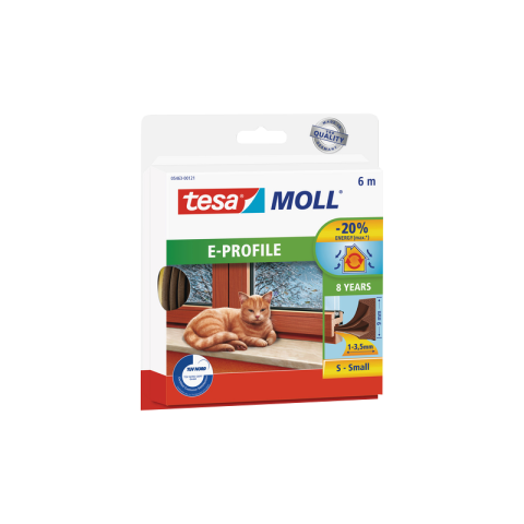 1 kép Tesa MOLL E-PROFIL BELTÉRI AJTÓ- ÉS ABLAKTÖMÍTŐ SZALAG 9MMX6M BARNA
