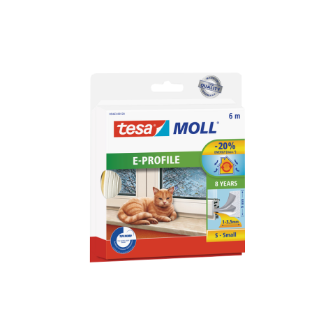 1 kép Tesa MOLL E-PROFIL BELTÉRI AJTÓ- ÉS ABLAKTÖMÍTŐ SZALAG 9MMX6M FEHÉR