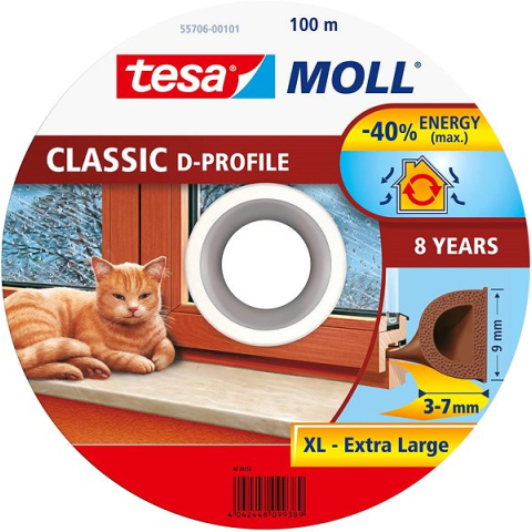 Ablaktömítés - hossza: 100 m, D profil, gumi, vastagság: 3 - 7 mm Tesamoll seals are used to insulate windows and doors, which prevents drafts, and retains heat in the apartment and house even during winter days. Silicone seal in the form of self-adhesive ta