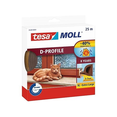 Ablaktömítés - hossza: 25 m, D profil, gumi, vastagság: 3 - 7 mm A tesamoll tömítőszalagot az ablakok és ajtók szigetelésére tervezték a huzat kiküszöbölésére. Az öntapadó gumi tömítőszalag ellenáll az időjárással szemben. Minden időjárási körülménnyel megbirkózik,