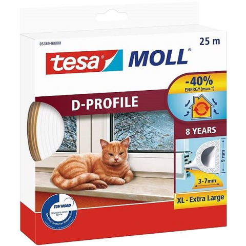 Tesa moll Gumi tömítés, fehér, D profil, 25 m