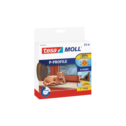 1 kép    Tesa MOLL P-PROFIL BELTÉRI AJTÓ- ÉS ABLAKTÖMÍTŐ SZALAG 9MMX25M BARNA