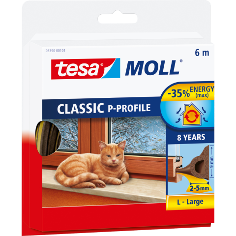1 kép Tesa MOLL P-PROFIL BELTÉRI AJTÓ- ÉS ABLAKTÖMÍTŐ SZALAG 9MMX6M BARNA