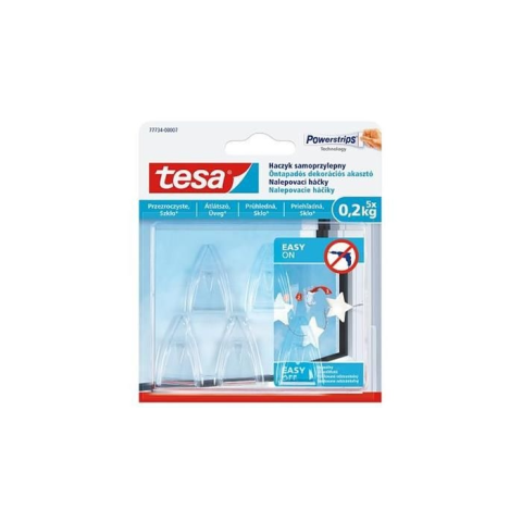 1 kép Tesa Műanyag akasztó, ragasztócsíkkal, kis méret, TESA "Powerstrips®", átlátszó, 5db/bliszt