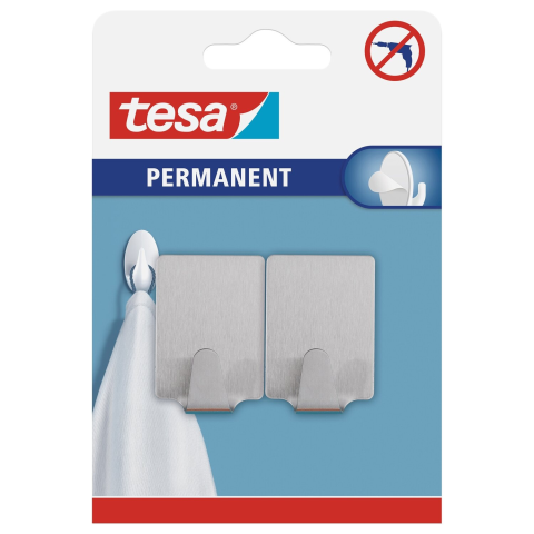 1 kép Tesa nagy, szögletes, öntapadó, rozsdamentes acél tartós akasztó, 2db