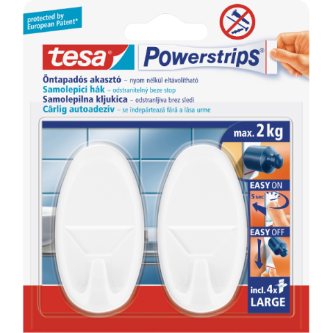 1 kép Tesa POWERSTRIPS NAGY, OVÁLIS AKASZTÓ, FEHÉR, 2DB
