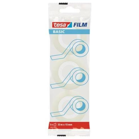 Ragasztószalag, 15 mm x 33 m, TESA "Basic", átlátszó - TE58542 - Rögzítő- és ragasztóanyagok - Ha mindenfajta alkalmazásra megfelelő, sokoldalú ragasztószalagot keres, a tesafilm® BASIC átlátszó ragasztószalag a válasz. -oldószermentes ragasztóval bevont