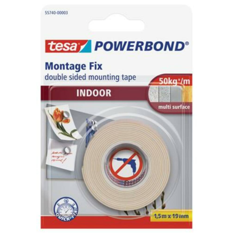 Ragasztószalag, kétoldalas, beltéri, 19 mm x 1,5 m, TESA Powerbond (TE55740) Ideális beltéri használathoz Extraerős rögzítés 10 cm szalag 5 kg* megtartására alkalmas Rögzíthető csempéhez, gipszkartonhoz, fához és a legtöbb műanyaghoz *max. 10 mm vasta