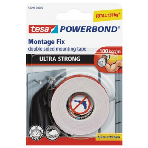 A tesa® legerősebb kétoldalas rögzítőszalagja, amely képes nehéz tárgyak megtartására, bel- és kültéren egyaránt.