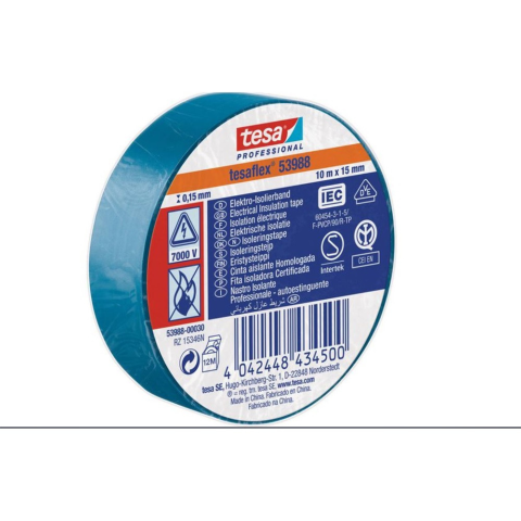 SZIGETELŐSZALAG KÉK 15MMX10M TESA Az 53988 elektromos szigetelőszalag megbízható segítséget nyújt villanyszerelőknek, szerelőknek vagy más ezermestereknek. Vastag alapanyag, magasfokú rugalmasság és nagyon magas ragaszóerő jellemzi (még acélon illetve