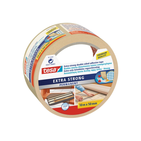 A tesa extra erős kötésű szalag egy padlószőnyeg és PVC-padló rögzítő szalag, amely az extra erős tapadást a tartóssággal kombinálja. Professzionális minőségű öntapadó padlólerakó szalag, melyet kifejezetten strapabíró padlóburkolatokhoz terveztek. Használja bármilyen kellően szilárd, száraz és tiszta padlófelületen. Padlófűtéssel rendelkező helyiségekben is tökéletesen használható. Padlószőnyegekhez és PVC-padlókhoz is ideális minden fedett kült