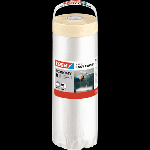 A tesa® univerzális takarófólia és festőszalag öntapadó tesa® maszkolószalaggal ellátott átlátszó műanyag felületvédő fólia az egyszerű alkalmazás és a pontos maszkolás érdekében. Használja ezt az egyedi védőfóliát, hogy meggyorsítsa otthona felújítását, és egyszerűsítse a falak házilagos festését. Nemcsak a padló és a bútorzat festékpöttyöktől való megvédéséhez alkalmas, hanem sokoldalú festőszalag is egyben, elősegítve a pontos élekkel t