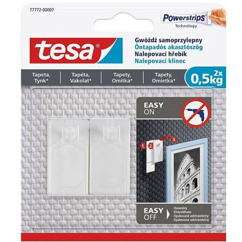 Öntapadós akasztószög - A különféle képek és a dekorációk kényes felületekre (tapéta vagy vakolat) történő felfüggesztése mindössze néhány pillanatot vesz igénybe a tesa® termékének köszönhetően. Minden akasztó 0,5 kg teherbírással büszkélkedhet (két akasztóval pedig kétszer annyival). Ráadásul a Smart Powerstrips® technológiának hála nyom nélkül, könnyen eltávolítható. Többször is használhatja őket. Nincs szükség fúróra vagy kalapácsra,