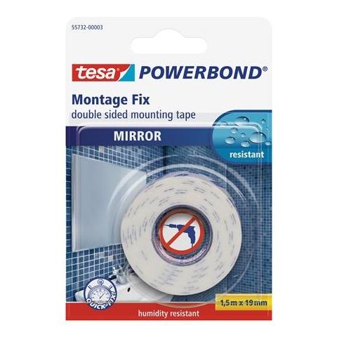 A tesa® Powerbond tükörragasztó szalag gyors és kényelmes módja a tükrök és egyéb lapos tárgyak nedves helyeken való tartós rögzítésének.