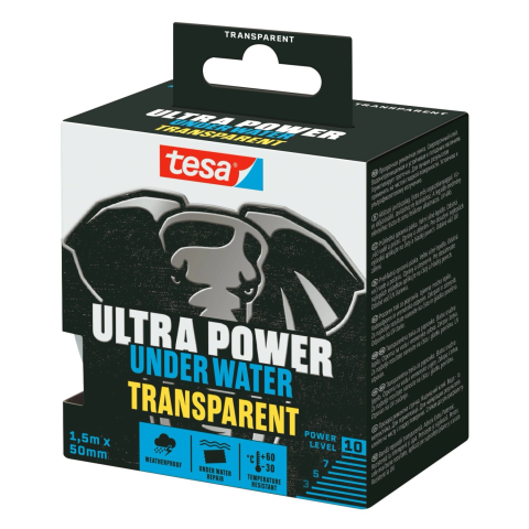 Egy repedés a medencében, egy törött lapát, egy szivárgó lefolyócső vagy bármilyen más váratlan probléma a mindennapokban vagy egy szabadtéri kaland során gyors és megbízható megoldást igényel. Az átlátszó tesa® Ultra Power Under Water javítószalaggal száraz és nedves felületen egyaránt elvégezhető a javítás. Víz alatt is használható és rendkívül erős és hosszan tartó tartást garantál. Ez a többcélú, átlátszó szalag rugalmas és hatékonyan alka