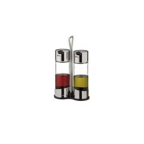 Állványos ecet-és olajtartó. Otthoni és professzionális-vendéglátóipari- használatra egyaránt kiválóan alkalmas. Anyaga: rozsdamentes acél ill. ellenálló műanyag. Könnyen használható.