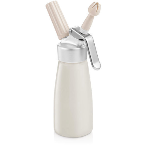 Habszifon - űrtartalma 0,25l, anyaga műanyag, alumínium és szilikon, bézs kivitel A 0,25 l űrtartalmú TESCOMA DELÍCIA fém szifonos tejszínhabkészítő palack tartós, kényelmes és biztonságos használattal büszkélkedik. A csomagolás tartalmaz három dekorációs fejet a könnyű és kreatív