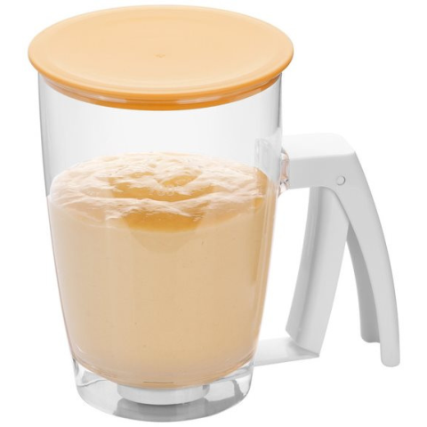 Mérőpohár - műanyag, mért egységek L, fül a csomag része, mérete 16,5 × 12 × 17 cm (Ma×Sz×Mé), átlátszó kivitel A great kitchen accessory for easier preparation of desserts from the TESCOMA brand will please all bakers and confectioners. With the pour dough dispenser, pour the dough into the container b
