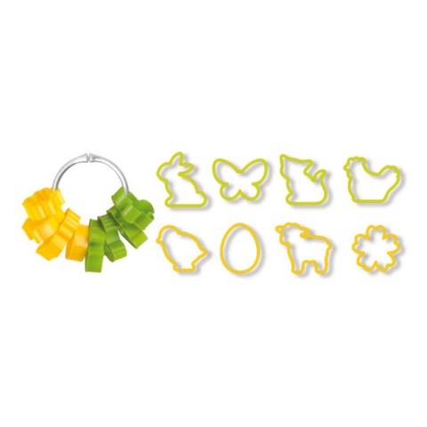 Kiválóan alkalmas húsvéti sütemények könnyű és gyors kiszúrására, 8 kiszúrót és egy karikát tartalmaz, azok könnyű elrakására. Első osztályú ellenálló műanyagból készült, mosogatógépben tisztítható.