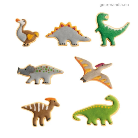KIDS 7 darabos keksz kiszúró készlet, dinók Alkalmas dinó formájú kekszek, linzerek készítésére, de használható gyurmázáshoz is. Anyaga: prémium minőségű műanyag Tiszítás: mosogatógépben mosható 3 év gyártói garancia