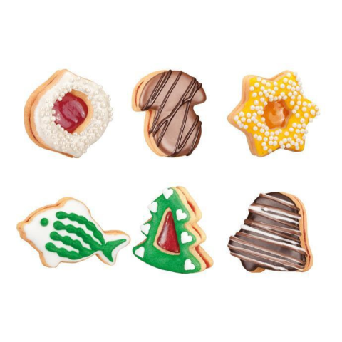 Egyedi kiszúrók eredetien formázott linzer sütemények készítéséhez, dobozban a kényelmes raktározáshoz. Ellenálló első osztályú műanyagból készült, mosogatógépben tisztítható.