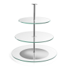 Elegáns süteményállvány üvegtányérokkal. A 3
