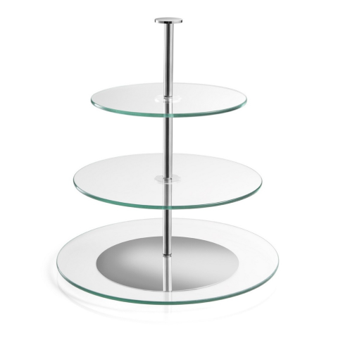 Elegáns süteményállvány üvegtányérokkal. A 3