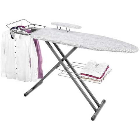 Vasalódeszka - hossza: 116cm, 36 cm széles, állítható magasságú, vasalt ruha tárolóval és gőzállomás kompatibilis Amíg nincs rá szükség, elvan a szekrény mögött, de segítségedre lesz amikor ingeket kell vasalni. A(z) TESCOMA Fancy Home vasalódeszka vasalódeszka praktikus, átgondolt és minőségi anyagokból készül.