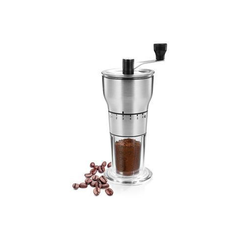 Kávédaráló - kézi, őrlőköves, kerámia darálómechanizmus, 6 őrlési fokozat, méretek 22,5 × 15,5 × 8 cm (Ma×Sz×Mé), ezüst kivitel A legjobb íz elérése érdekében elengedhetetlen, hogy a kávét közvetlenül a készítés előtt őröld meg. Így minden bizonnyal nagyszerű megoldás a kiváló minőségű Tescoma kézi kávédaráló mindenkinek, aki