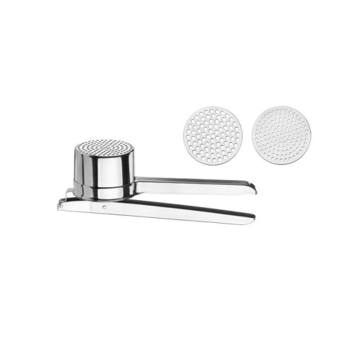 Rozsdamentes acélból készült eszköz mely burgonyatöréshez ill.levesbetét készítéséhez (passatelli) is kiválóan alkalmas. 2 betéttel. Mosogatógépben mosható.