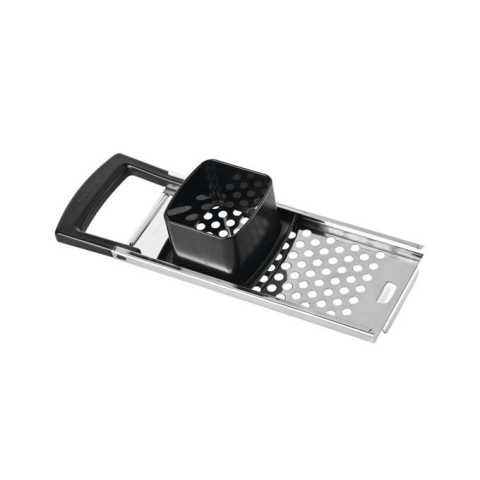 Rozsdamentes acélból és ellenálló műanyagból készült kislyukú galuska/nokedli szaggató. Mosogatógépben mosható.