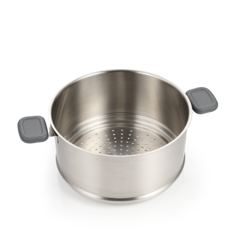 A GrandCHEF párolóedény kiválóan alkalmas minden 20 cm-es és 22 cm-es edényben való párolásra és gőzölésre. Prémium minőségű rozsdamentes acélból készült, a fogantyúk pedig tartós műanyagból vannak.