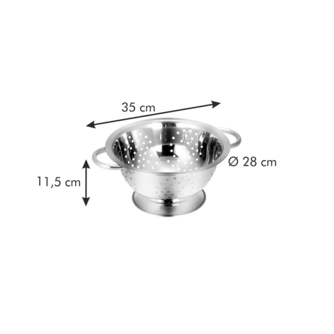 Tescoma GrandChef rozsdamentes acél szűrőedény talppal - 28 cm átmérőjű Ez a nagyméretű, 28 cm átmérőjű szűrőedény tökéletes választás a tészták, zöldségek és más ételek szűréséhez. Kiváló minőségű, rozsdamentes acélból készült, így tartós és könnyen...