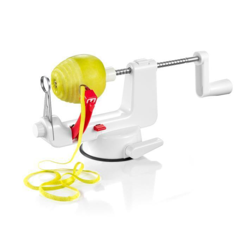 Könnyen és gyorsan hámozza, valamint egyenlő részekre szeleteli az almát és leválasztja a magházat. Alkalmas nagyobb mennyiségű hámozatlan alma szeletelésére aszaláshoz, hámozott alma vékony szeletelésére süteményekbe, gyümölcssalátákba, vagy egész alma hámozására befőttbe és bébiételekbe. Elsőosztályú rozsdamentes acélból és ellenálló műanyagból készült, hatékony tapadókoronggal könnyen rögzíthető.