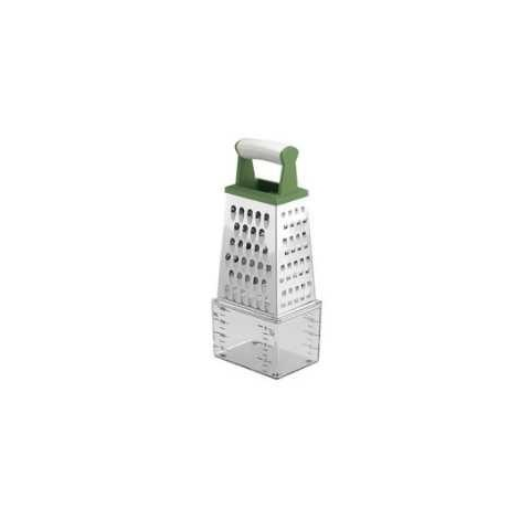 Rozsdamentes négyszögletes reszelő. Gyorsan és könnyen használható. Tartozik hozzá egy kis tartóedény is mely a reszelő aljára rögzítve tárolja a lereszelt vagy felszeletelt zöldséget, gyümölcsöt. Kényelmes, ergonómikus fogóval ellátva.