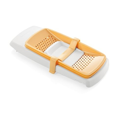 Konyhai reszelő - kézi, rendeltetése galuska, műanyag, 3 reszelődob/lemez a csomag része, 3 típusú reszelés, a részei mosogatógépben moshatók, reszelő és szeletelő egyben és biztonsági fogantyú a reszeléshez, bézs és fehér kivitel Egyszerűsítsd le a házi készítésű nokedli, galuska vagy csipetke készítését a praktikus TESCOMA HANDY szaggatóval. Ez a kitűnő konyhai segítség háromféle, különböző lyukátmérőjű feltétet és sp