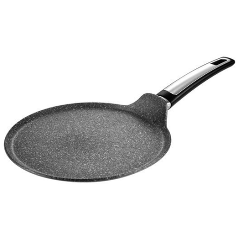 Serpenyő - palacsintasütő, alumínium, kerek, használható elektromos, gáz, kerámia és indukciós főzőlapon, mosogatógépben mosható és tapadásmentes felület, alumínium külső felület, ergonomikus, rozsdamentes acél és műanyag fogantyú, mérete 5,5 × 27 × 45 cm (Ma×Sz×H), serpenyő felső szélének átmérője 26 cm, fekete kivitel TESCOMA i-PREMIUM Stone serpenyőMinőségi és tökéletes serpenyőt keresel? A TESCOMA i-PREMIUM Stone serpenyő kiváló minőségű tap