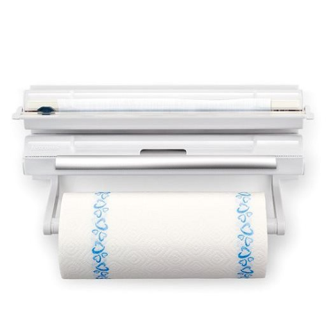 Papírtörlő tartó - dübeles rögzítés, műanyag, alkalmas papírtörlő, alufólia és élelmiszer fóliák tárolására, fóliavágó kések a csomag része, mérete 18 × 38,5 × 8,5 cm (Ma×Sz×Mé), fehér kivitel, tömege 610 g Fontos számodra, hogy minden kéznék legyen a konyhában, amire szükséged van? Használd a Tescoma papírtörlőtartót, amit tiplik segítségével fogathatsz fel. Anyaga minőségi műanyag, használhatod papírtö
