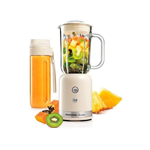 Turmixgép - 350 W teljesítmény, pulzáló funkció, ajánlott smoothiehoz és pürékészítésre, hordozható palack a csomag része, 1 tárolóedény a csomagban, 0,6 l-es tartály, üveg edény A kitűnő TESCOMA PRESIDENT - 0,6l, antracit egy jól kihasználható turmixgép, amely egyik konyhából sem hiányozhat. Stabil 350 W teljesítményének hála könnyedén készíthetsz magadnak és barátaidnak smoo