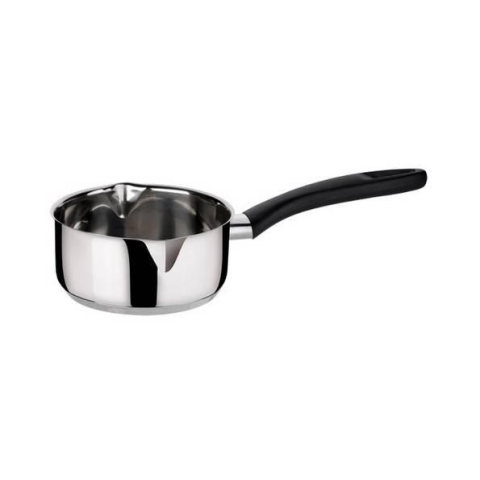 Kiváló minőségű rozsdamentes acélból készült tejforraló, két oldalán kifolyóval, nyéllel. Űrtartalma: 1,5 liter, átmérője: 16 cm.