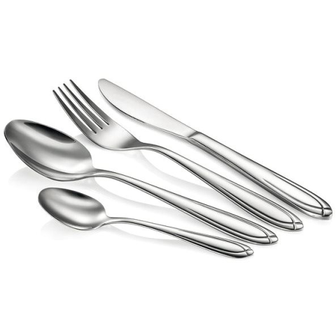 Evőeszközkészlet - étkezővilla, étkezőkés, étkezőkanál és teáskanál, alkalmas mosogatógépbe, rozsdamentes acél, 6 készlet összesen 24 db evőeszközzel A hatrészes alapvető evőeszköz készlet anyaga rozsdamentes acél, első osztályú felületi kezelést kapott. A Tescoma SCARLETT evőeszközkészlet klasszikus kialakítású, kanalakat, villákat, késeket é