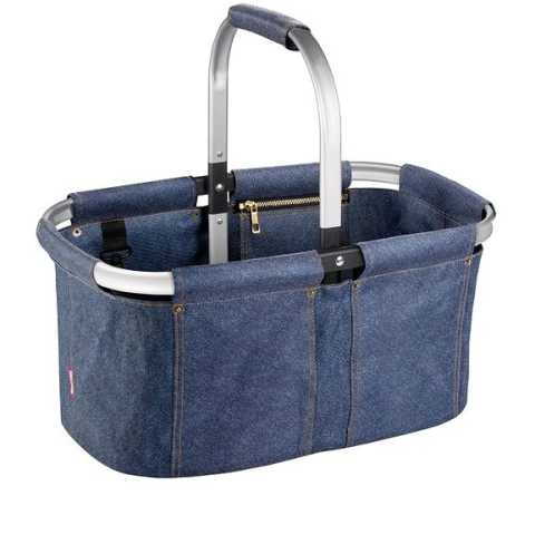 Bevásárlókosár -összecsukható, térfogat 23 l, teherbírás 20 kg, minőségi szintetikus farmer anyag, erős és stabil, szétnyitva és összecsukva is tartja az alakját The shopping basket ensures clarity and, unlike a regular bag, the raw materials do not wrinkle in it. Tescoma SHOP! denim style is foldable and does not take up space either at home or on the