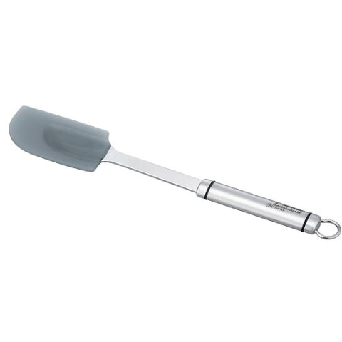 Konyhai spatula - cukrász és pék, akasztólyukkal és tűzálló, spatula anyaga szilikon, markolat anyaga rozsdamentes acél, mérete 29 × 5,6 cm (H×Sz), szürke és ezüst kivitel, 1 darabos csomag Ahhoz, hogy a főzés és a sütés a lehető legkényelmesebb legyen, minőségi konyhai eszközöket érdemes használnod. A Tescoma SPACE PRESIDENT spatula megkönnyíti az ételek, desszertek, piték és sütemények