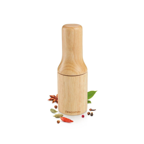Kiválóan alkalmas kemény fűszerek – egész bors, csillagánizs, szegfűbors, boróka, szegfűszeg, kardamom, koriander, ánizs, mustármag, édeskömény stb. – egyszerű és gyors összezúzására. Masszív brazil kaucsukfából készült.
