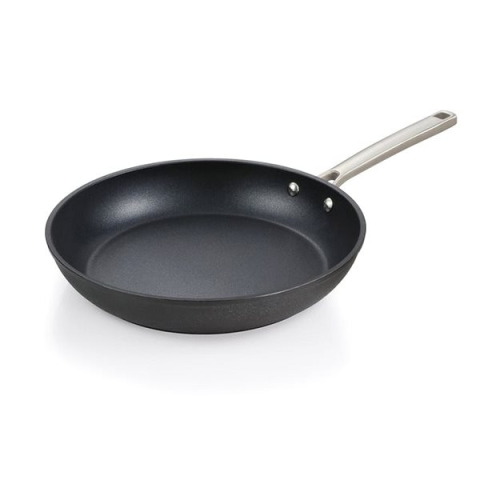 Serpenyő - rozsdamentes, alumínium, kerek, használható elektromos, gáz, kerámia és indukciós főzőlapon, tapadásmentes felület, maximális sütési hőmérséklet a sütőben 230 °C, mérete 5 × 48,5 cm (Ma×H), serpenyő felső szélének átmérője 28 cm, serpenyő aljának külső átmérője 22,5 cm, fekete és ezüst kivitel A Tescoma serpenyő tapasztalt szakácsokat és kezdőket egyaránt kiszolgál. A serpenyő rozsdamentes alumínium bevonattal van bevonva. A serpenyő al