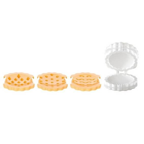 Kiválóan alkalmas édes és sós töltött sütemények, rácsos tészták készítéséhez. 3 különböző rács mintát tartalmaz a csomag. Anyaga: ellenálló műanyag. Mosogatógépben mosható.